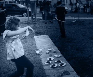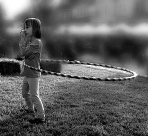 I very small girl spinning a hula hoop that was way bigger than her, with a startling nonchalance. Casualness, even, to the point where she could pick her nose at the same time.