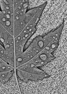 Wow, such a perfect subject, a newly fallen leaf with perfect little dewdrops. When photographing anything in nature, I always shoot just as the object is, I never dress it up or move it around to look more interesting. Here, there was nothing I could have done to make it more perfect! The contrasting texture of leaf and concrete, the shadow around the edges, the drops … all perfect and only necessitated snapping the picture, and playing it up with HDR. And a B&W filter, of course. Using B&W in this situation makes the textures the focal point of the picture, without the distractions of color.